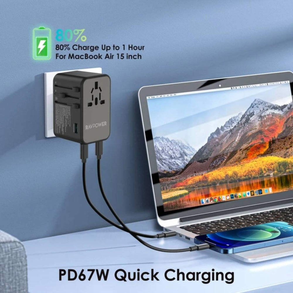 تم تصميم هذا الفيش بقوة 75 واط لضمان توفير طاقة كافية لشحن الأجهزة الأكثر استهلاكًا مثل اللابتوبات وأجهزة الألعاب والأجهزة اللوحية والهواتف الذكية وشحن سريع يصل الى 67 واط. سواء كنت في رحلة عمل أو تستمتع بعطلة، يمكنك الاعتماد على فيش سفر راف باور للحفاظ على أجهزتك مشحونة وجاهزة للاستخدام.